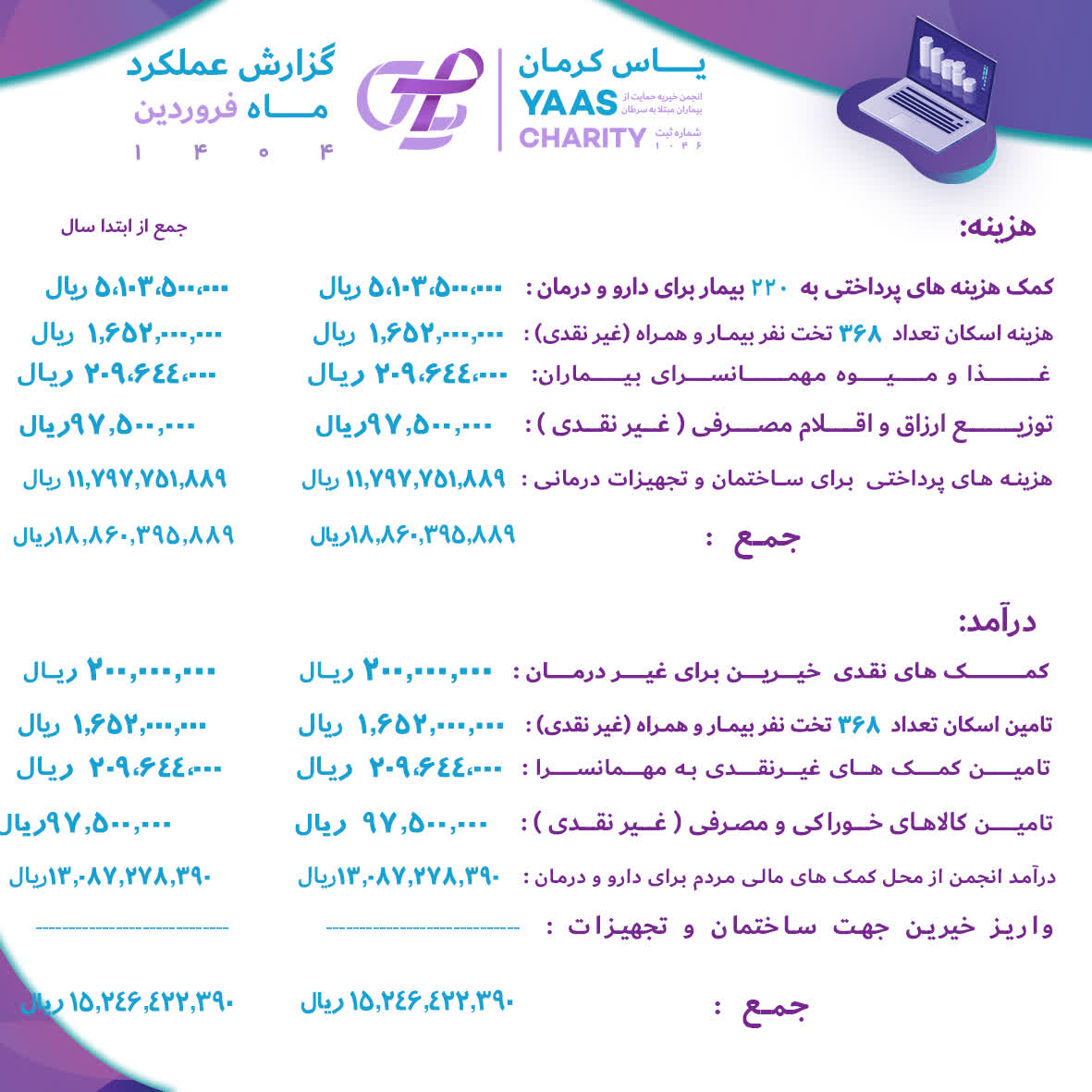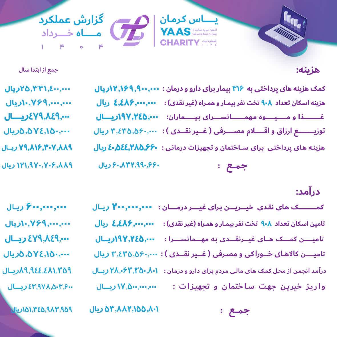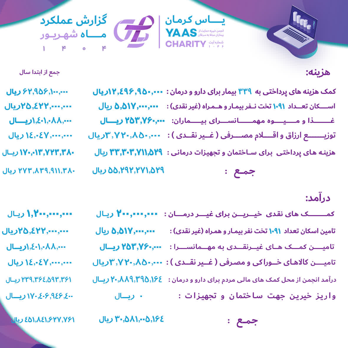 در گزارش ۹ ساله انجمن یاس کرمان به صورت کامل و با مبالغ دقیق تمامی هزینه